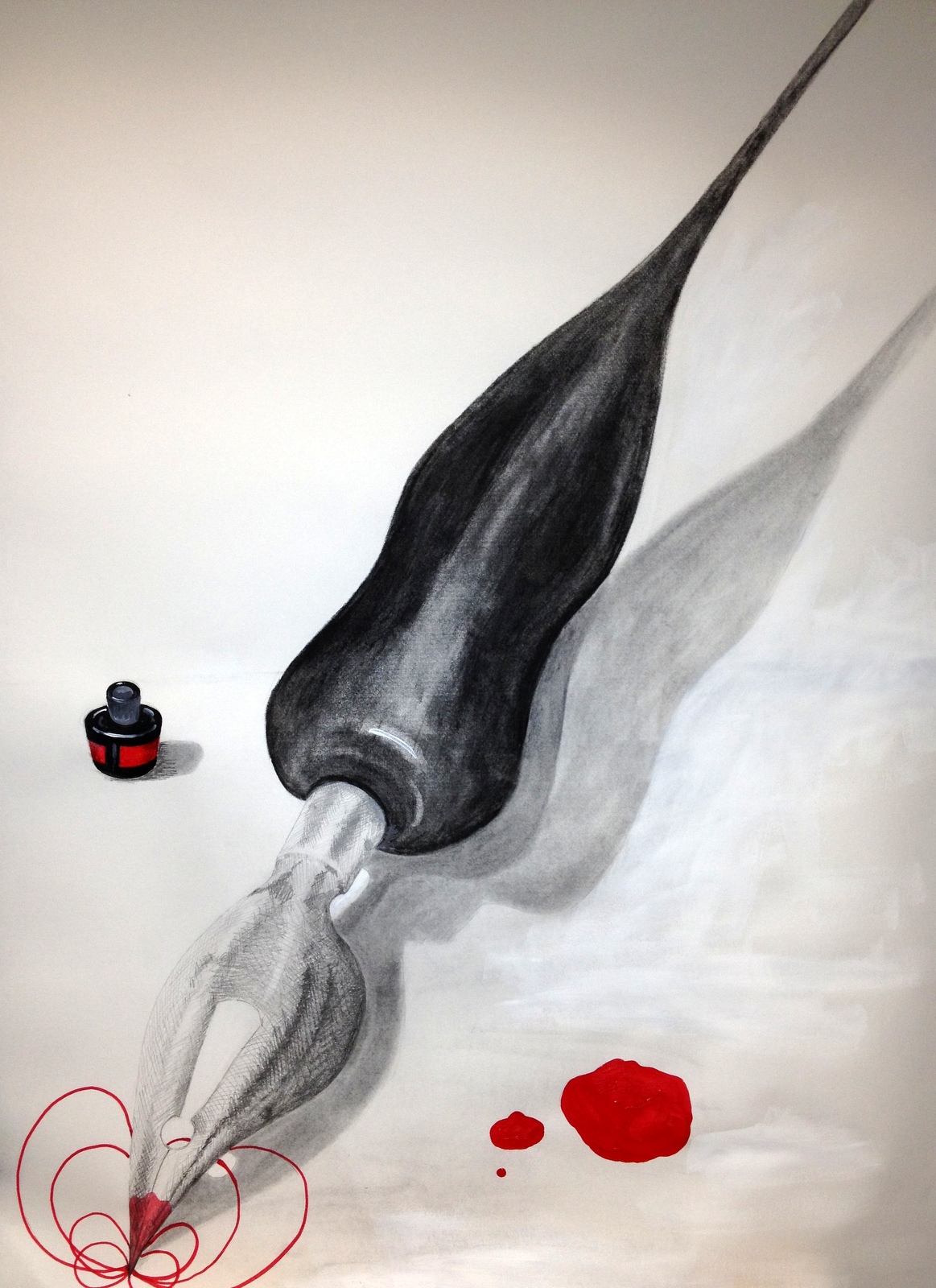 Drawings The pen is mightier than the sword, 2012. Charcoal, pencil and ink on paper, 84.1 x 59.4cm Selfie. Collection of the artist. Happiness. Collection of the artist. Industry, 2013. Charcoal on paper, 21 x 29.7cm. Pearls, 2013. Charcoal on paper. Sold. Share this: Click to share on X (Opens in new window) X Click to share on Facebook (Opens in new window) Facebook Click to share on Tumblr (Opens in new window) Tumblr Like Loading...