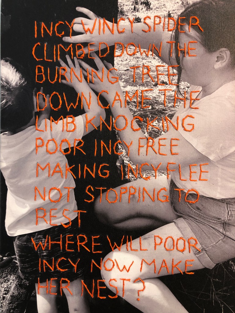 Incy Wincy, 2019. Photograph and embroidery on canvas. 46 x 32cm.