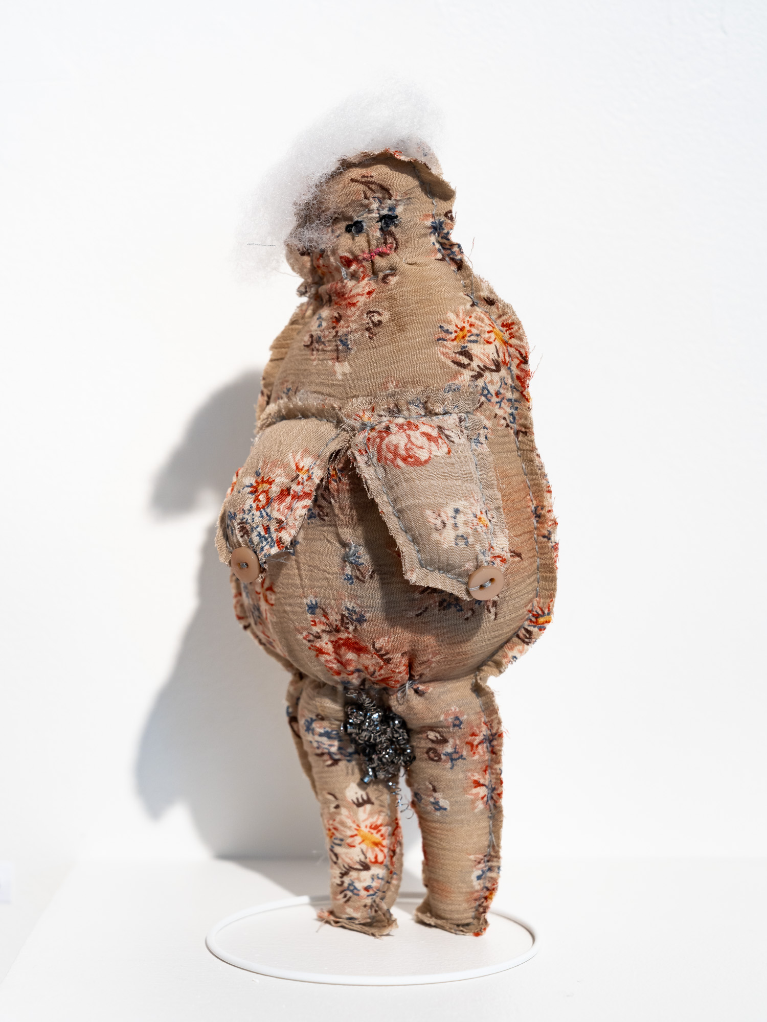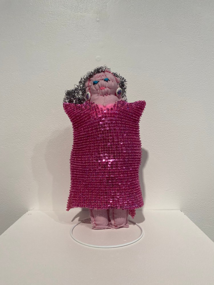 The Venuses is an exhibition of hand stitched soft sculpture figures who are costumed and who represent hypothetical modern-day Venuses. Additionally, I have painted each of their portraits to further elevate the Venuses. The Venuses are inspired by the Venus of Willendorf who is estimated to be at least 30,000 years old. According to the Head of Vienna’s Natural History Museum, Ms Antl-Weiser when speaking of the original Venus she believes that “She’s (the Venus) rather (an) older woman, one who has certainly already had children.” She is most certainly not the marble statue of the young Venus of Roman times who stands with arms crossed over her body protecting her modesty. Each of my Venus figures have the same squat plumpness of the original Venus of Willendorf and each figure stands approximately 30 cm tall (the original was a mere 11 cm tall). My soft sculptures reference older women and the lives they lead. For example, The Venus of Housework is made from cleaning cloths and acknowledges women’s ongoing domesticity. Other examples are the Venus of Insomnia, a maddening condition prevalent in older women